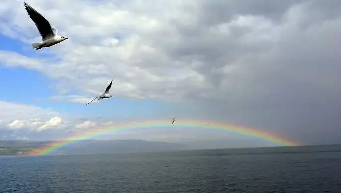 有一番詩(shī)意。雨后彩虹,輝煌燦爛,像仙女的彩帶,又像迎接他人的彩橋,仿佛能把人引入神話世界。