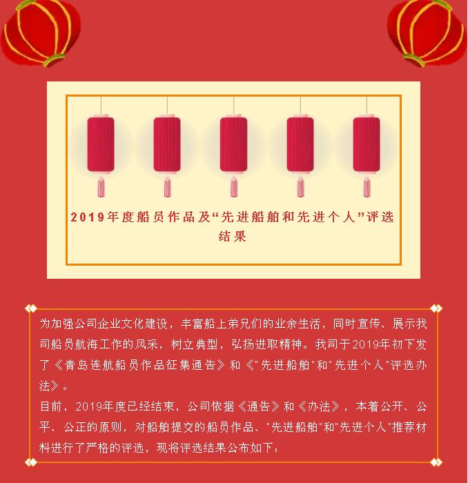 2019年度船員作品及“先進船舶和先進個人”評選結(jié)果